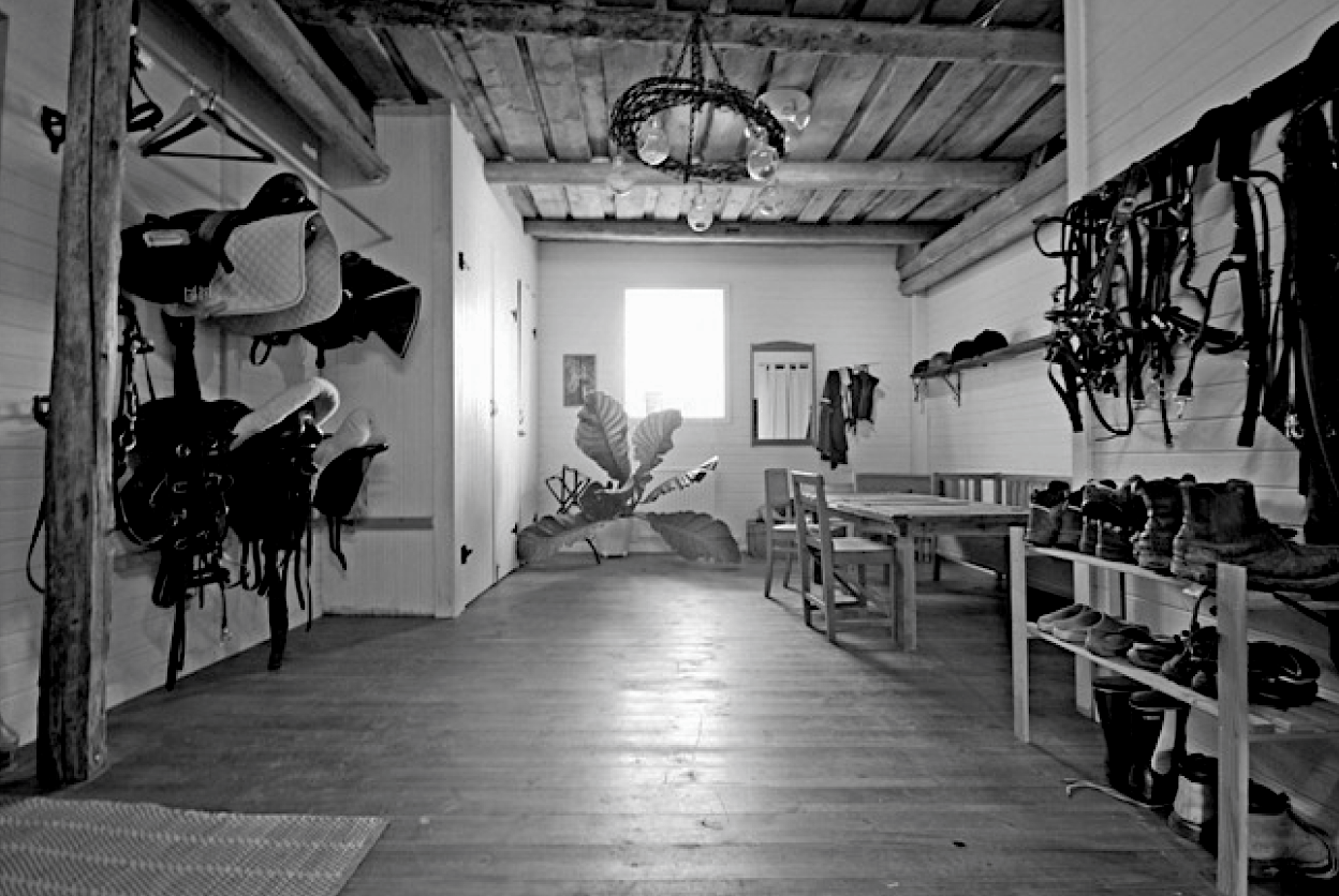 The farm had a newly built paddock, six fenced huts and a total of five hectares of land. The barn had previously been transformed into an atelier by Norwegian visual artist Asle Nyborg.