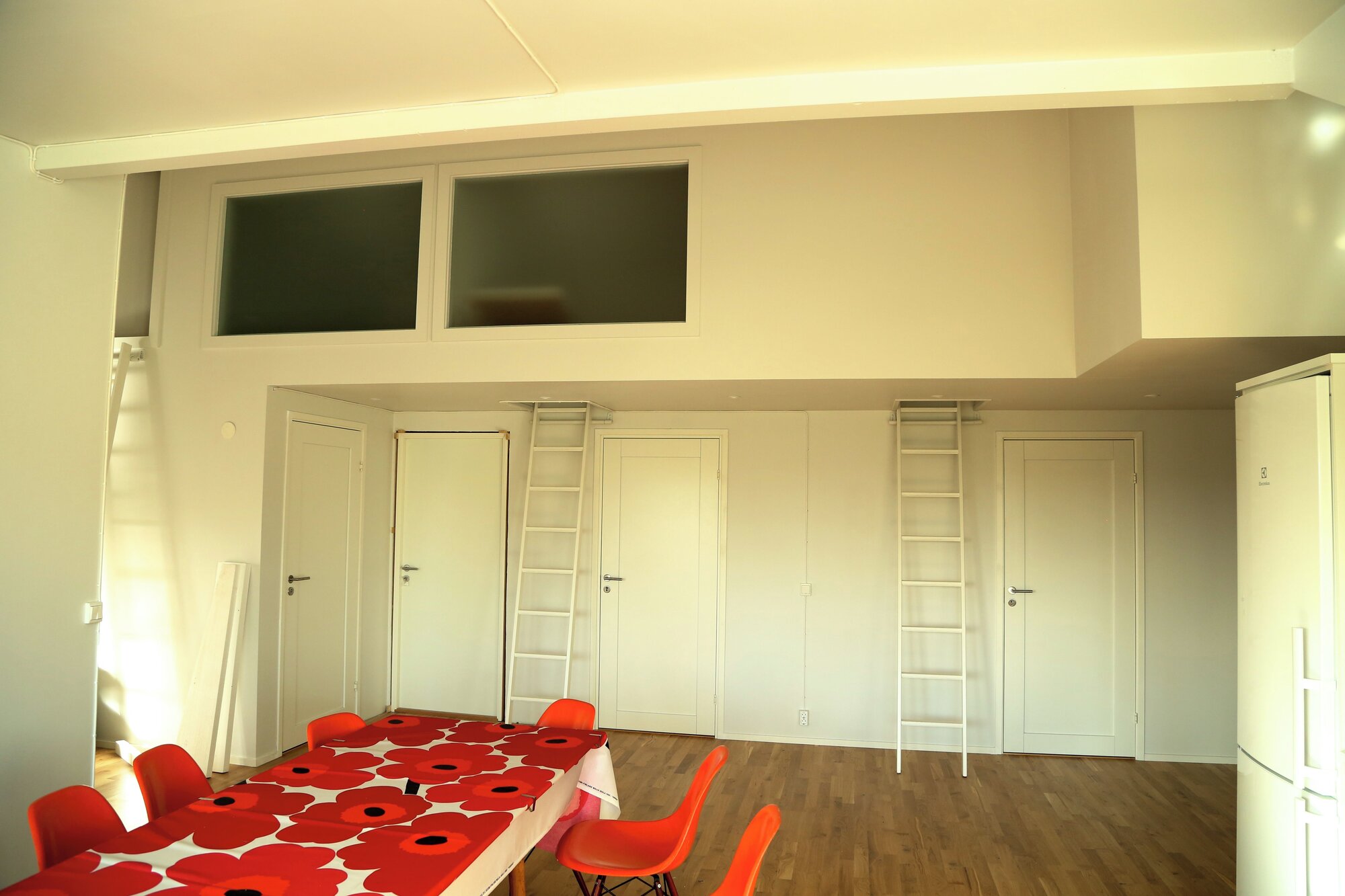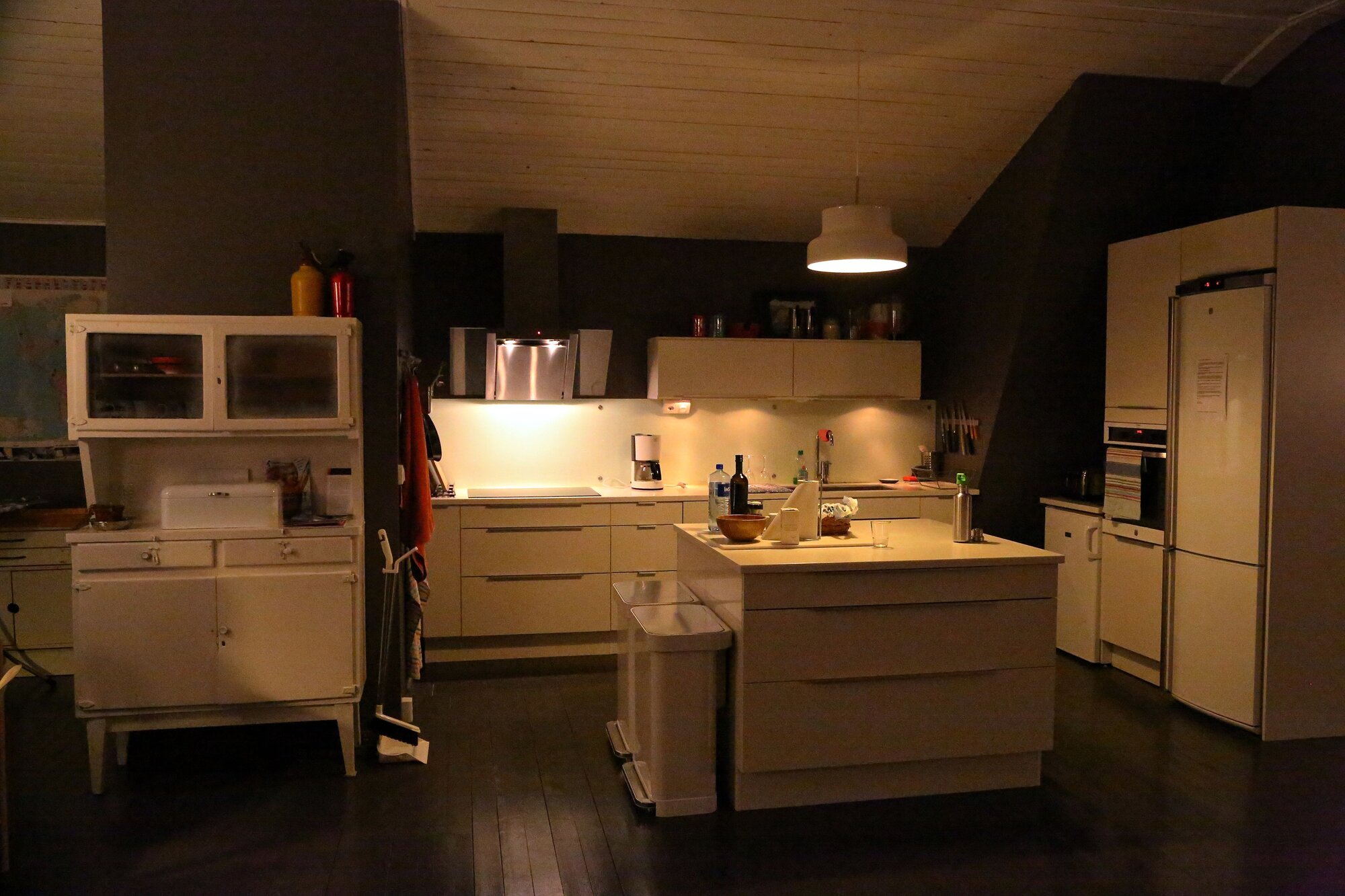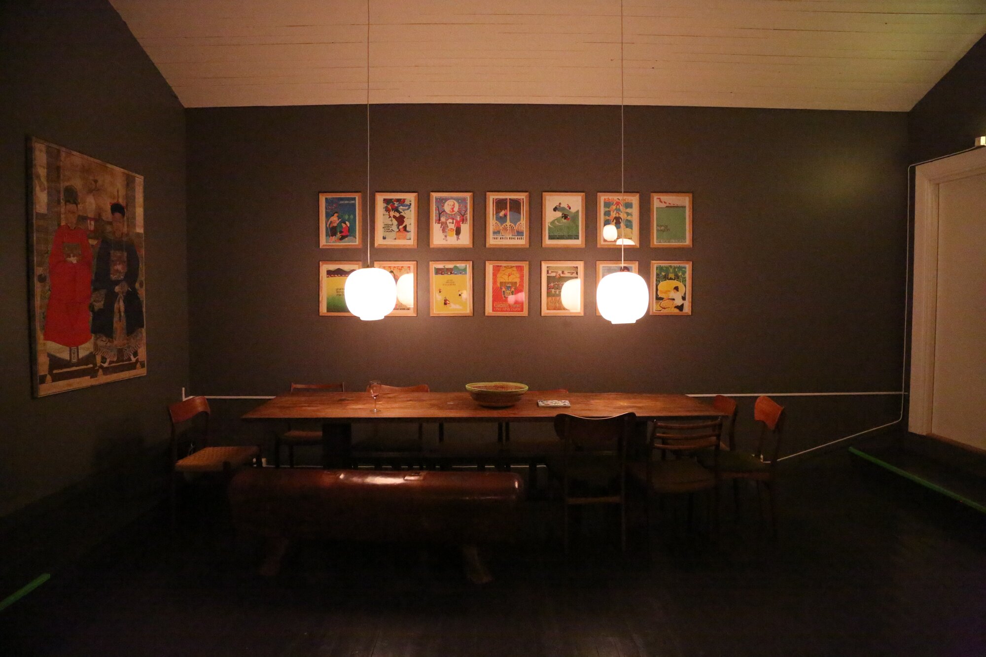 The interior design mixes vintage and new Danish furnitures, with old Swedish and Polish cabinets, colonial benches, Japanese and African textiles, an original Imperial Chinese painting, alongside Vietnamese propaganda prints from the 60’s, and many other objects collected over many years.