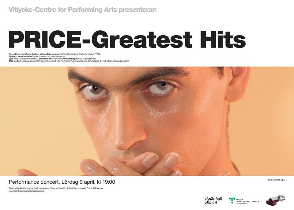 PRICE is an art project by Mathias Ringgenberg. Greatest Hits is the name of his debut album and performance that could not be more pop. Yes, it seems an almost, PRICE must have invented the Pop. Greatest Hits deals with nostalgic feelings of existing lyrics and melodies, embodied in mechanisms of mainstream pop while attempting the potential of musical and performative formats to explore. A collection of eight songs featuring simple solid emotional lyric and captivating R’n’B beats that talk about the longing, lust and fantasies that drive us all.