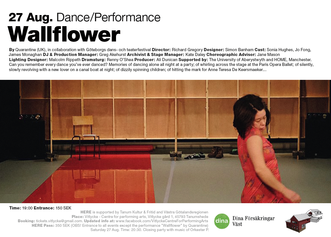 We are very proud to present the Swedish premiere of Wallflower at Vitlycke – Centre for Performing Arts, in collaboration with Göteborgs dans- och teaterfestival.